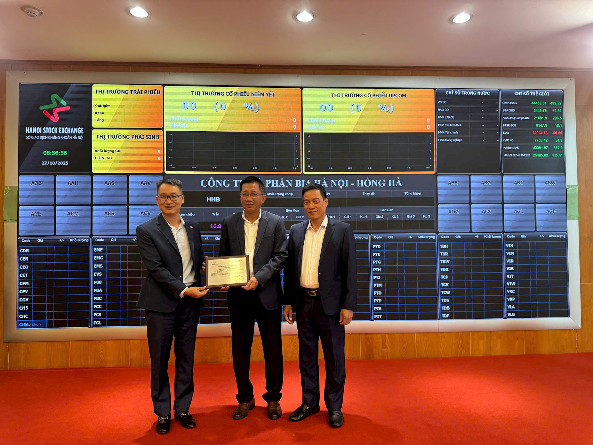 Sáng 27/10/2025, tại Sở Giao dịch Chứng khoán Hà Nội (HNX), Công ty Cổ phần Bia Hà Nội – Hồng Hà chính thức tổ chức Lễ khai mạc phiên giao dịch đầu tiên cổ phiếu của doanh nghiệp, đánh dấu bước ngoặt quan trọng trong quá trình phát triển và hội nhập trên thị trường chứng khoán Việt Nam.