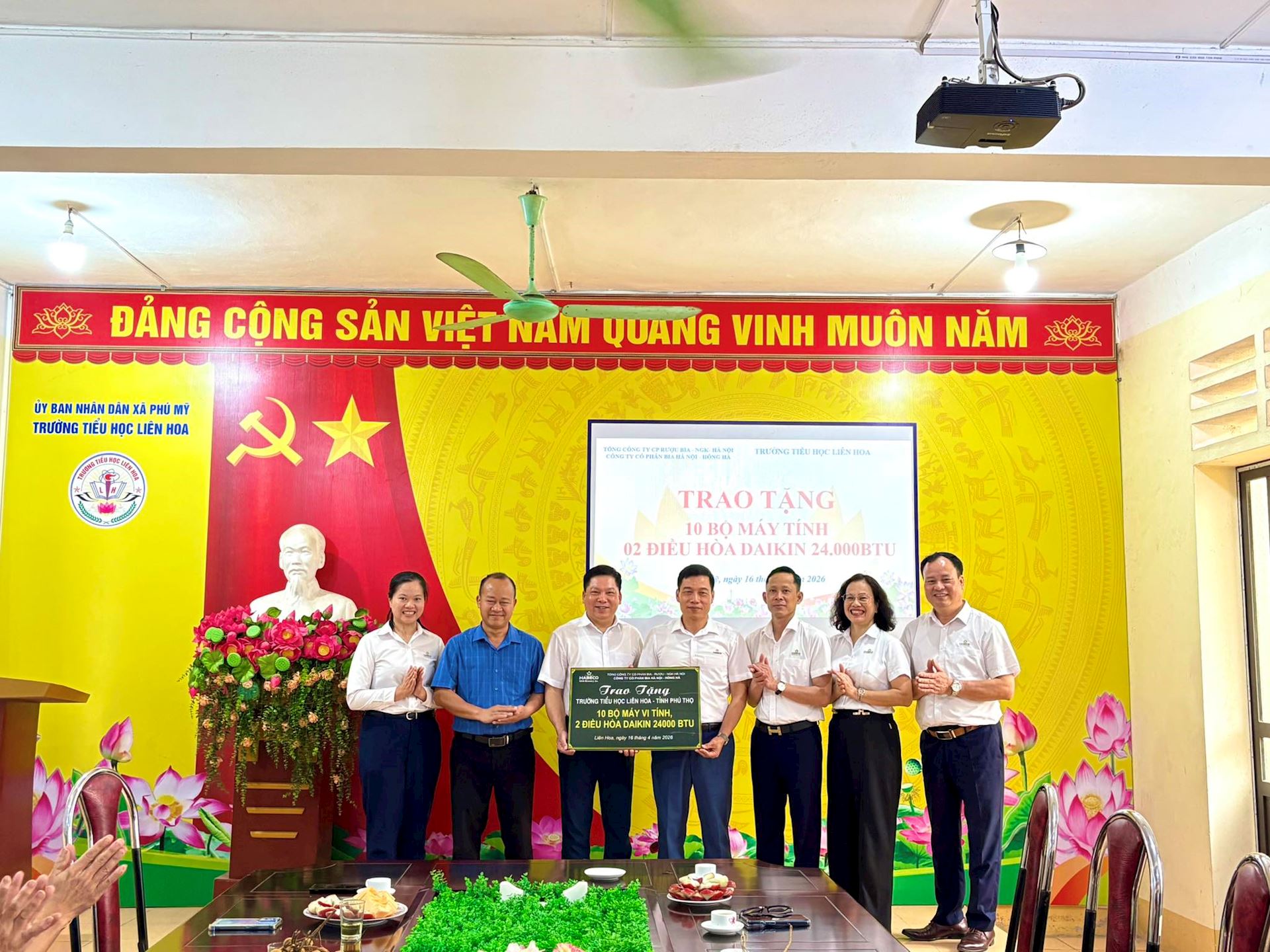 Sáng 16/4, Công ty Cổ phần Bia Hà Nội – Hồng Hà đã tổ chức chương trình trao tặng trang thiết bị học tập cho Trường Tiểu học Liên Hoa (tỉnh Phú Thọ), góp phần hỗ trợ nhà trường nâng cao điều kiện dạy và học.