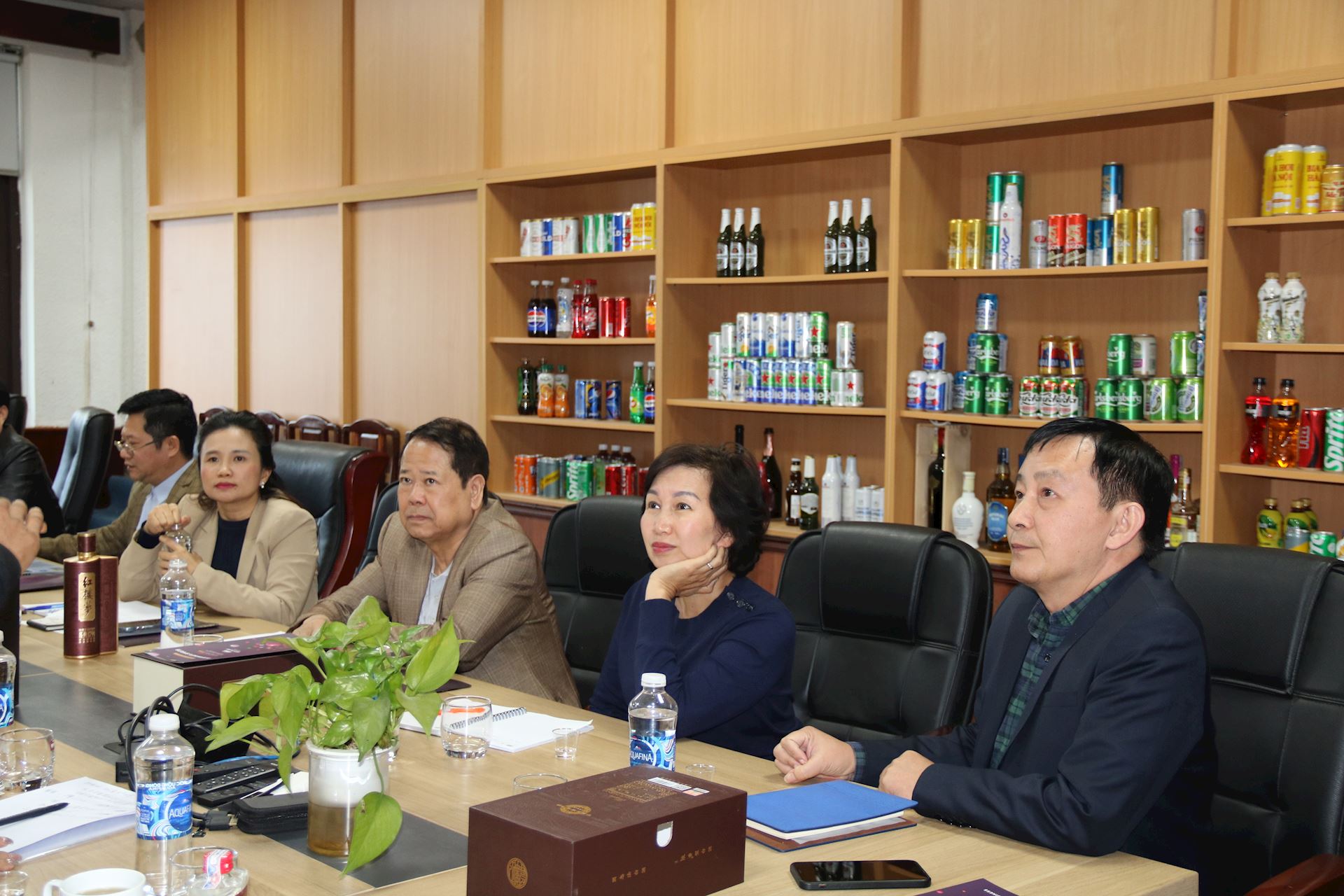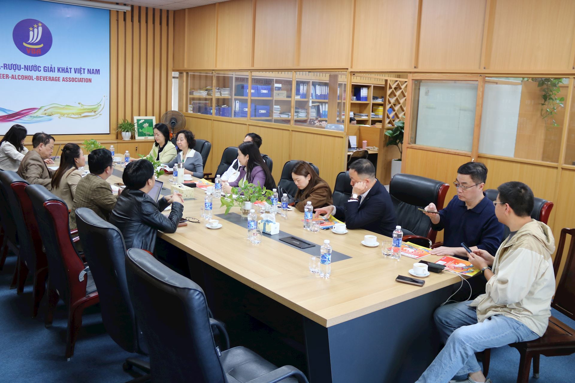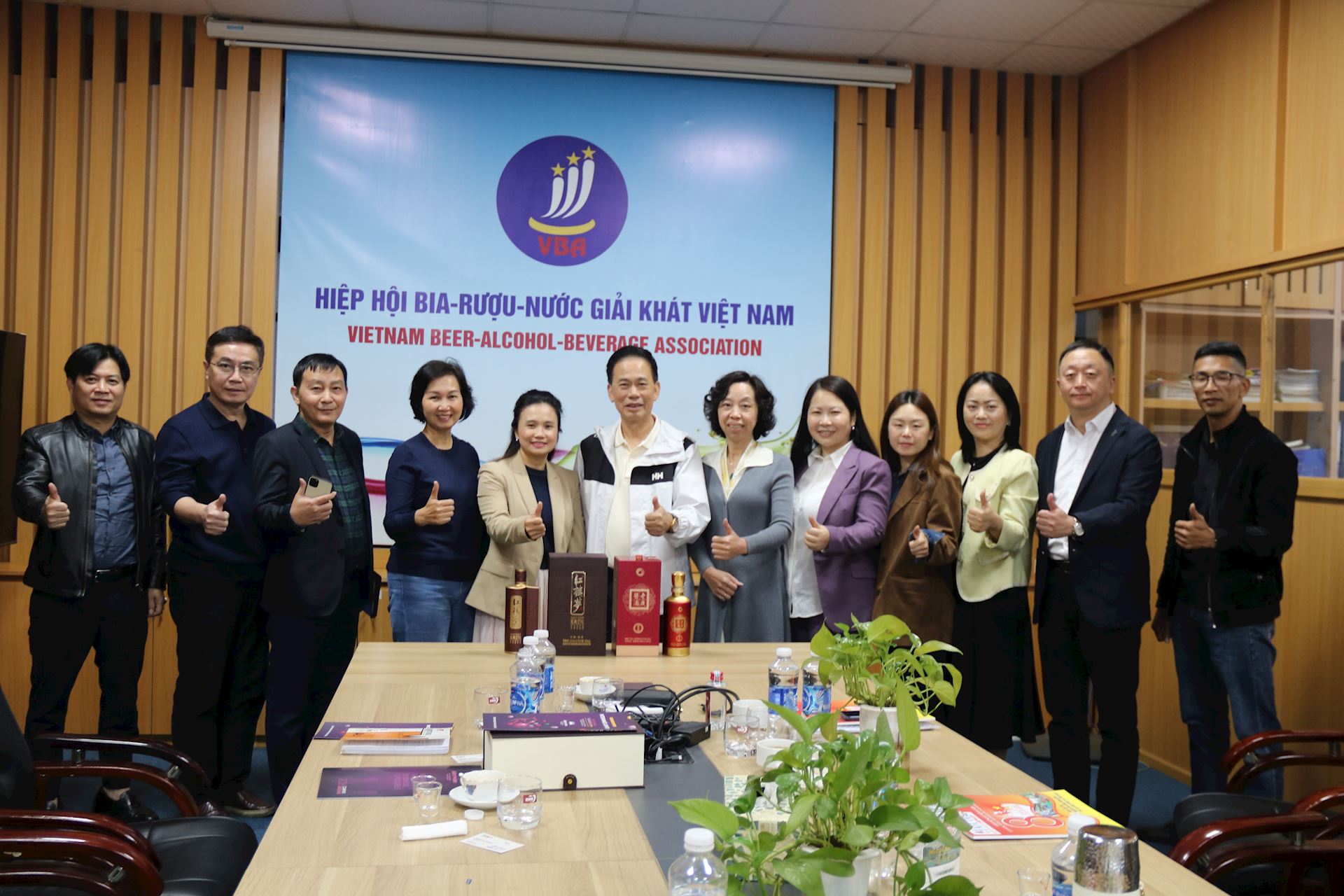 Tiếp đoàn doanh nghiệp Trung Quốc về phía VBA có bà Chu Thị Vân Anh – Phó Chủ tịch kiêm Tổng Thư ký VBA; ông Lương Xuân Dũng – Chánh Văn phòng VBA; ông Nguyễn Văn Chương – Tổng Biên tập Tạp chí Đồ Uống Việt Nam; ông Trần Hậu Cường – Giám đốc HALICO; bà Nguyễn Thị Tuyết – Trưởng Ban Kế hoạch Chính sách VBA; ông Nguyễn Ngọc Nam – Giám đốc Công ty CP Bia – Rượu – NGK Việt Nam.