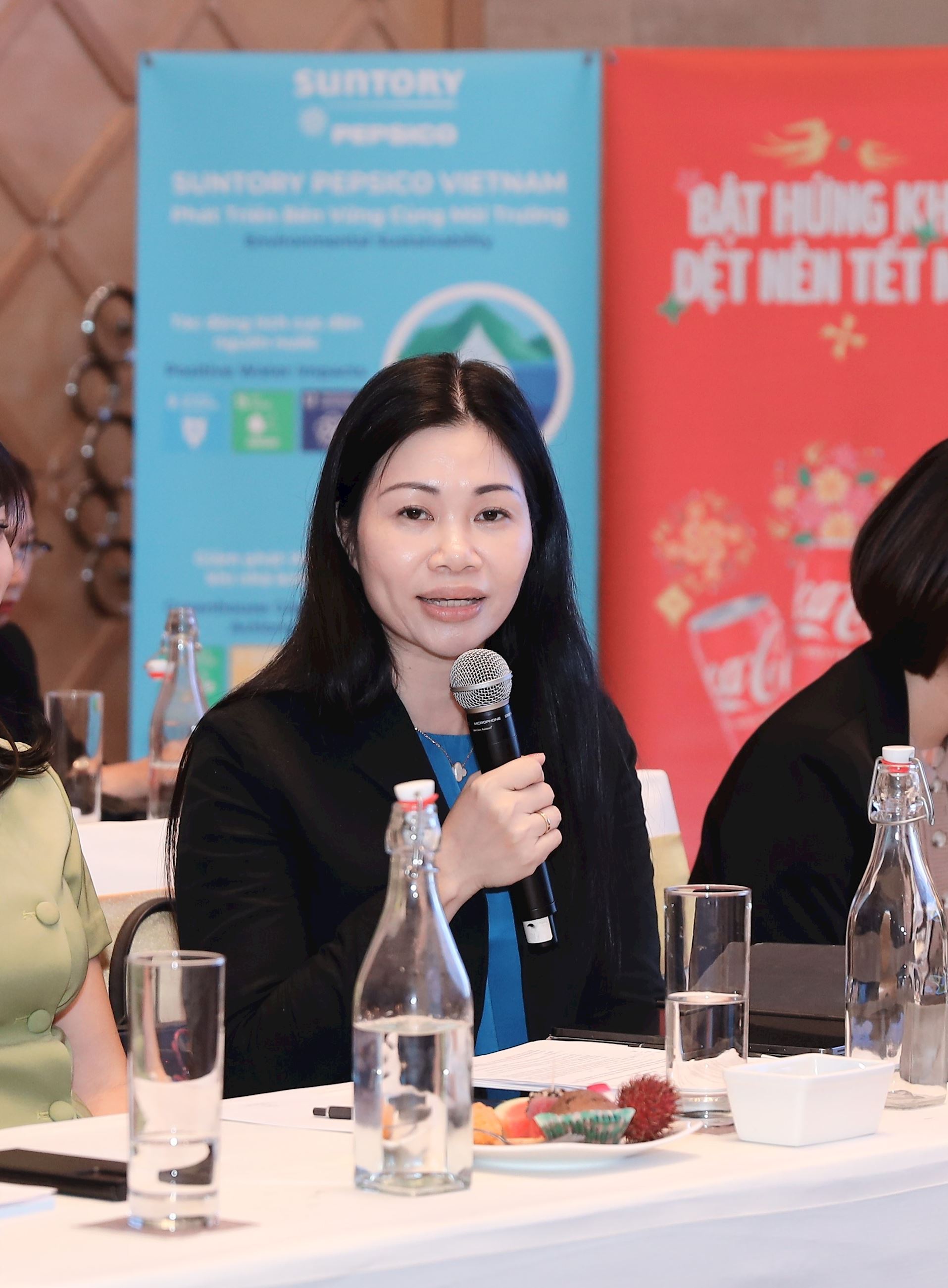 Bà Nguyễn Thị Hải Vân - Phó Tổng giám đốc Công ty TNHH Nước giải khát Suntory PepsiCo Việt Nam phát biểu tại Hội nghị.