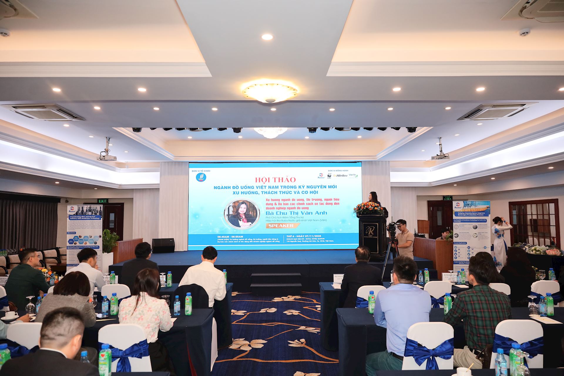 Tại Hội thảo, bà Chu Thị Vân Anh – Phó Chủ tịch kiêm Tổng Thư ký VBA trình bày tham luận với chủ đề: “Xu hướng ngành đồ uống, thị trường, người tiêu dùng và dự báo các chính sách sẽ tác động đến doanh nghiệp ngành đồ uống”. Bà Chu Thị Vân Anh cập nhật các thông tin về sự phát triển của thị trường đồ uống thế giới và Việt Nam; các xu hướng tiêu dùng, các nỗ lực và sự quan tâm đầu tư của các doanh nghiệp ngành đồ uống để hướng tới sự phát triển bền vững và đặc biệt là môi trường chính sách đã, đang và sẽ tác động tới ngành đồ uống như tăng thuế tiêu thụ đặc biệt, bảo vệ môi trường, nâng cao quản lý an toàn thực phẩm, truy xuất nguồn gốc hàng hóa, ghi nhãn hàng hóa, sửa đổi các tiêu chuẩn, quy chuẩn kỹ thuật đối với các sản phẩm đồ uống... Đây là những thông tin quan trọng đối với các doanh nghiệp ngành đồ uống và gợi mở nhiều góc nhìn, thách thức cũng như cơ hội cho ngành đồ uống.