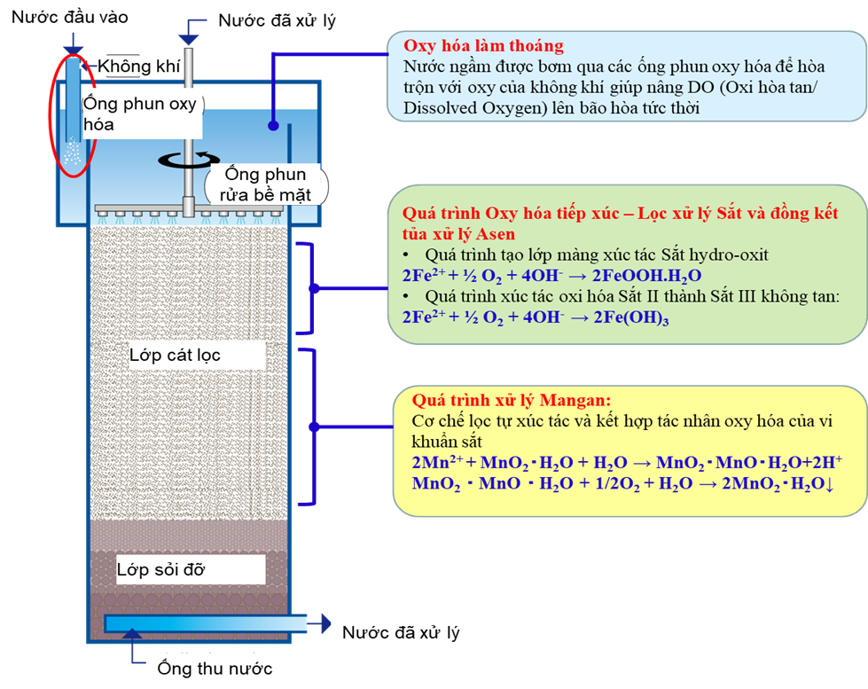 - Hàm lượng oxy cao giúp khử sắt, mangan, amoni, asen nhanh chóng và hiệu quả, vượt trội so với công nghệ lọc đa tầng truyền thống.