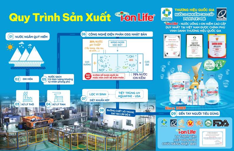 Hơn 15 năm phát triển thương hiệu nước ion kiềm cao cấp i-on Life đã đạt được các thành tựu đáng tự hào về đến chất lượng cũng như phát triển bền vững bảo vệ và thân thiện với môi trường như: i-on Life nước ion kiềm duy nhất trên thị trường 3 lần liên tiếp đạt Thương hiệu Quốc gia; 4 lần liên tiếp đạt Hàng Việt Nam chất lượng cao do Người tiêu dùng bình chọn; Doanh nghiệp 2 lần liên tiếp đạt Doanh nghiệp xanh TP.HCM và giải Vàng chất lượng Quốc gia Việt Nam.