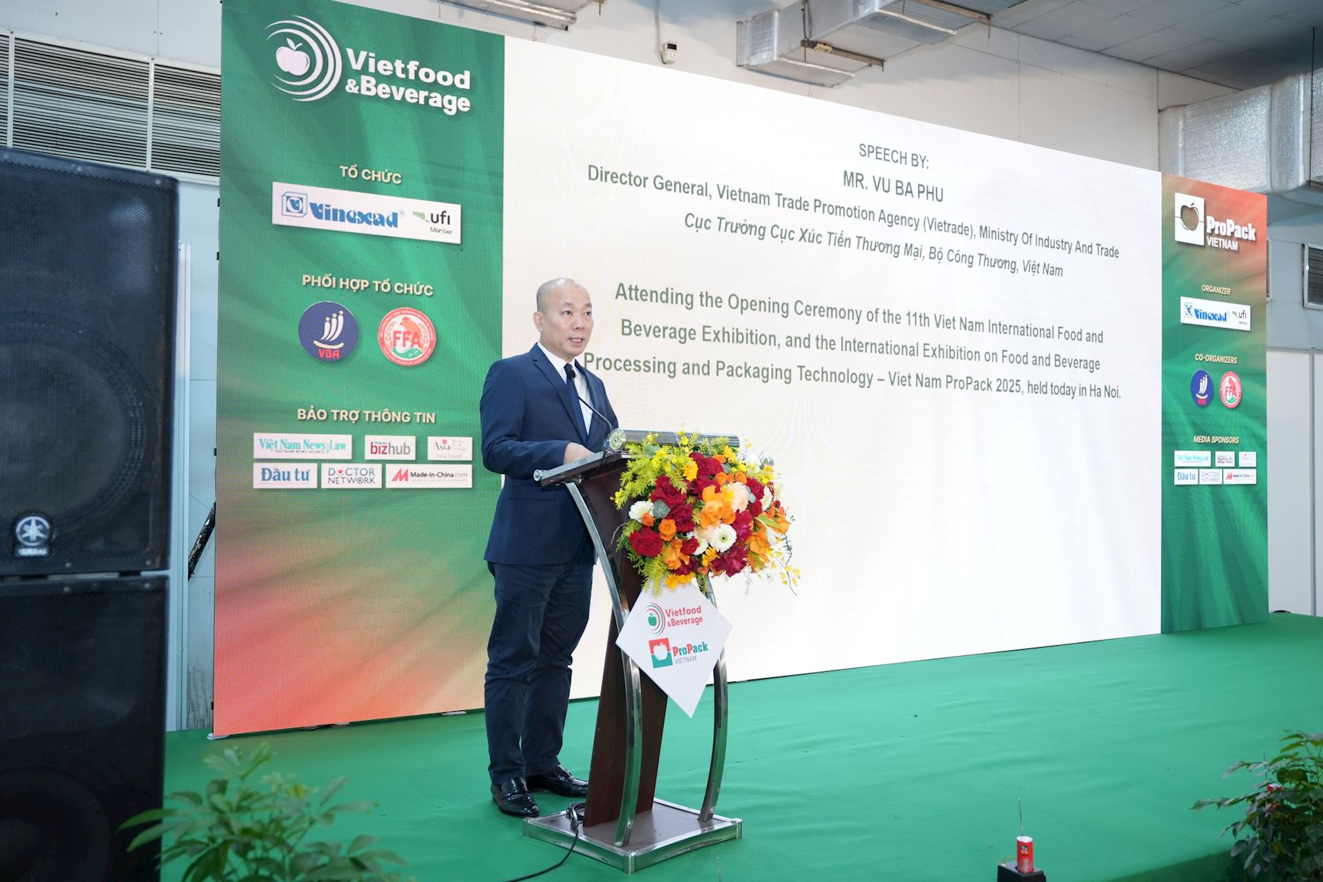 Phát biểu tại Lễ khai mạc, ông Vũ Bá Phú – Cục trưởng Cục Xúc tiến Thương mại (Bộ Công Thương) nhấn mạnh: Triển lãm năm nay không chỉ là hoạt động xúc tiến thương mại quan trọng mà còn là nơi để các nhà sản xuất, kinh doanh về thực phẩm, đồ uống, thiết bị công nghệ chế biến, bao bì thực phẩm, đồ uống trong nước và quốc tế tích cực trao đổi, tìm hiểu thị trường, đối tác liên doanh, liên kết, đầu tư. Qua đó, góp phần vào phát triển mạnh hơn nữa thị trường thực phẩm và đồ uống, mang lại quyền lợi cho người tiêu dùng Việt Nam.