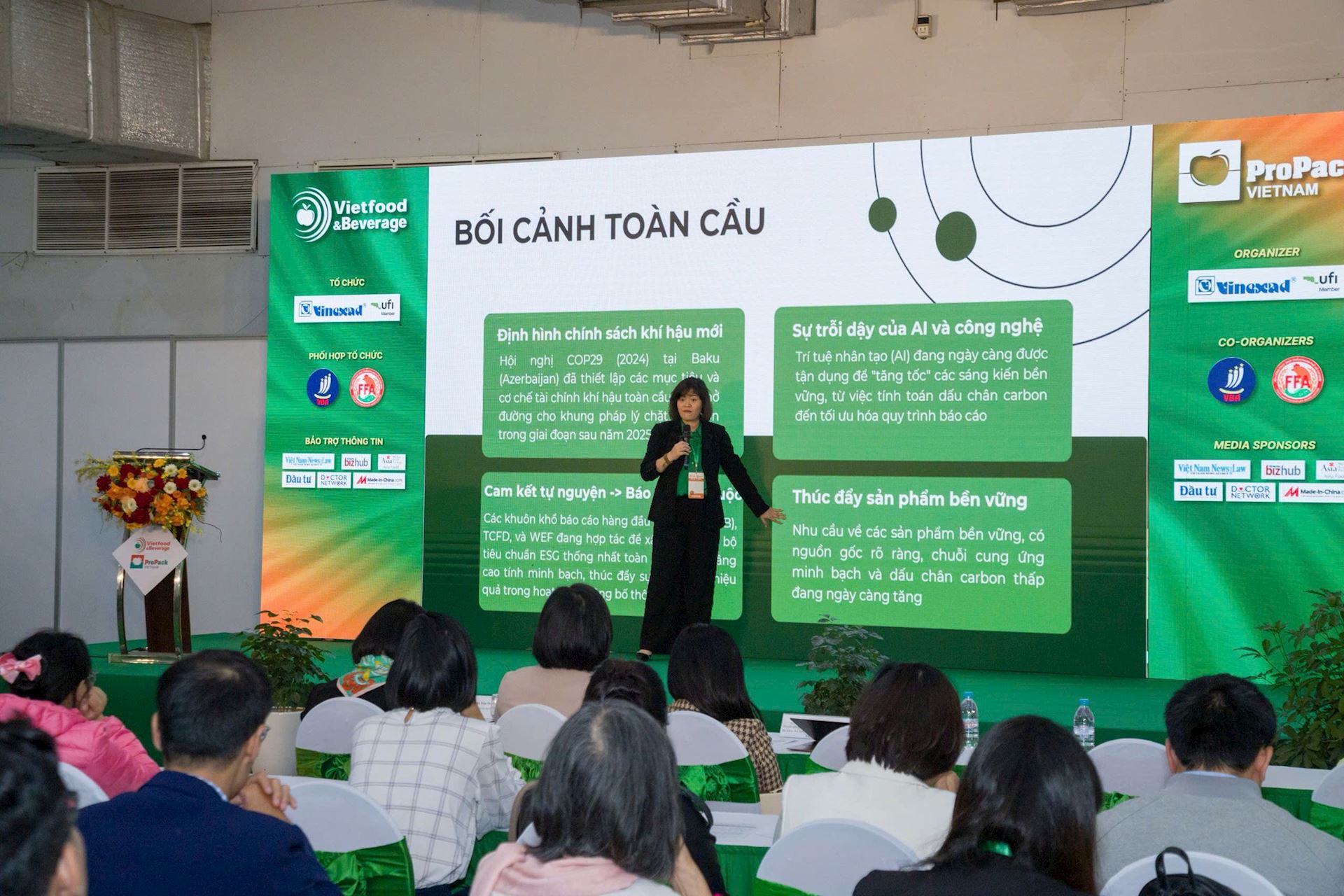 Sự kiện kết nối với chủ đề “ESG & Chuyển đổi xanh – Chìa khóa nâng tầm chất lượng và mở rộng thị trường xuất khẩu bền vững cho doanh nghiệp ngành thực phẩm, đồ uống Việt Nam” diễn ra trong khuôn khổ Triển lãm, thu hút đông đảo chuyên gia, doanh nghiệp và khách tham quan tham dự.